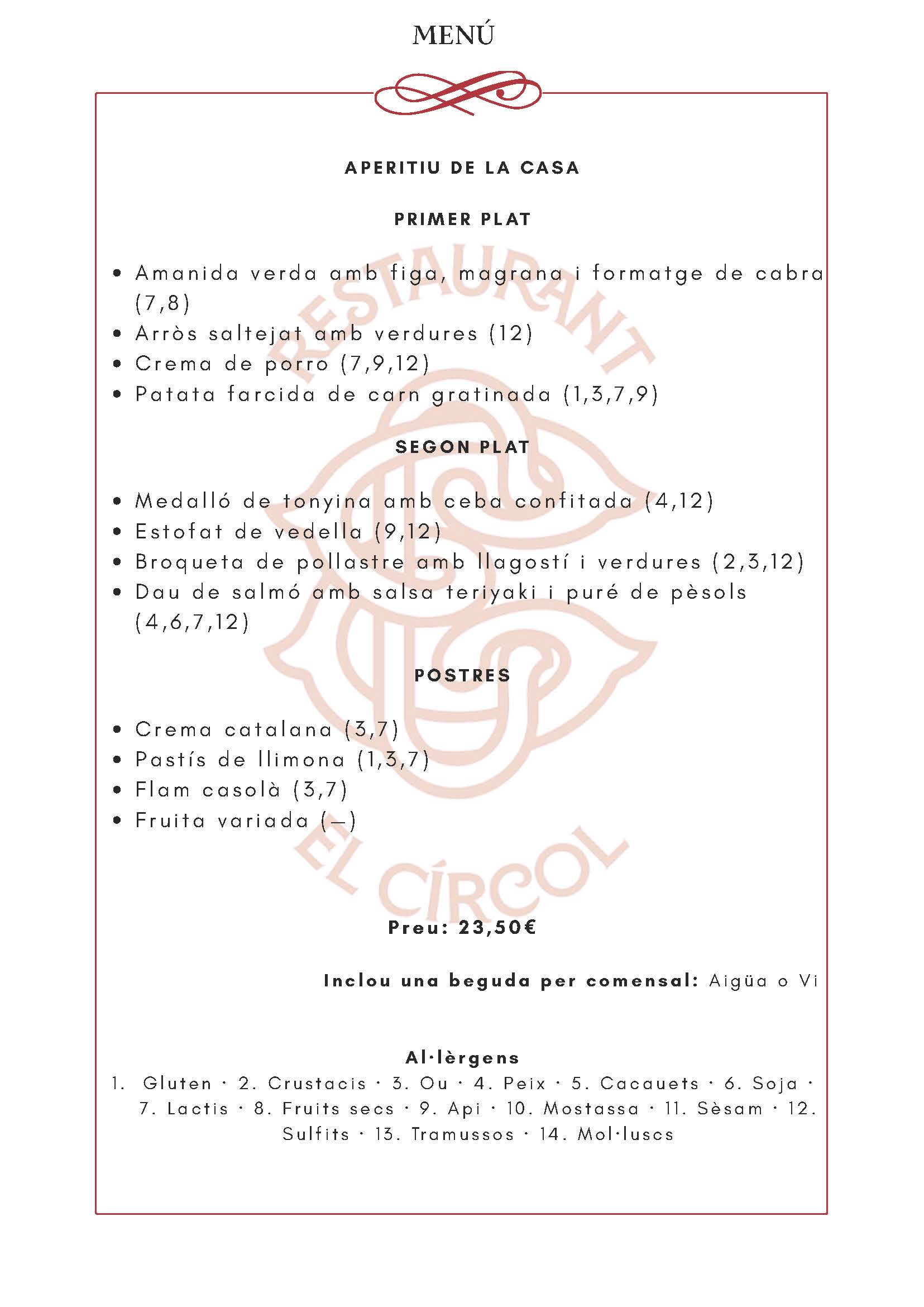 Per correu: elcircol.restaurant@gmail.com