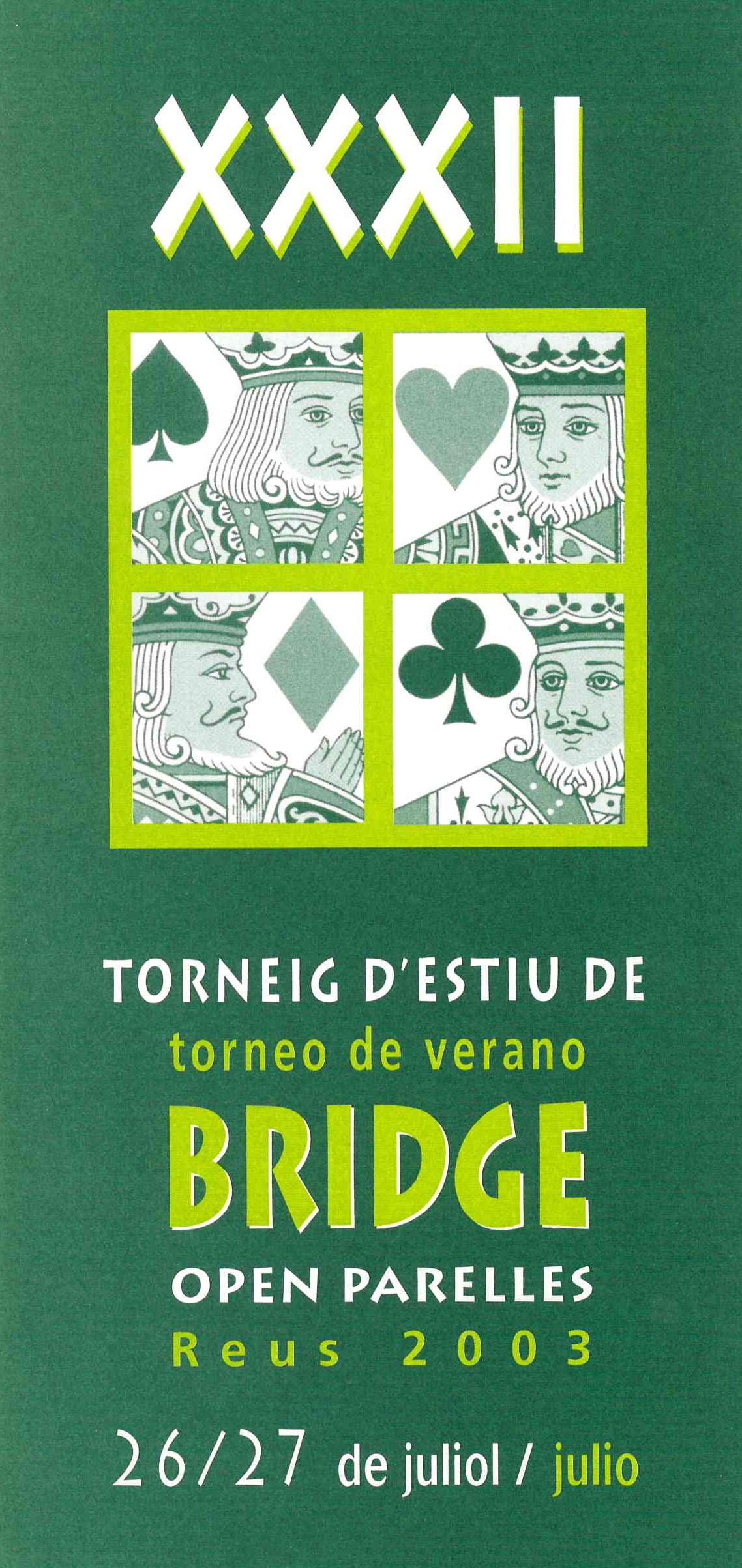 Data jul. 26 - 27, 2003Temps 6:00 pm - 8:00 pmLloc El Círcol de ReusOrganitza El Círcol de ReusCategoria Bridge Més info