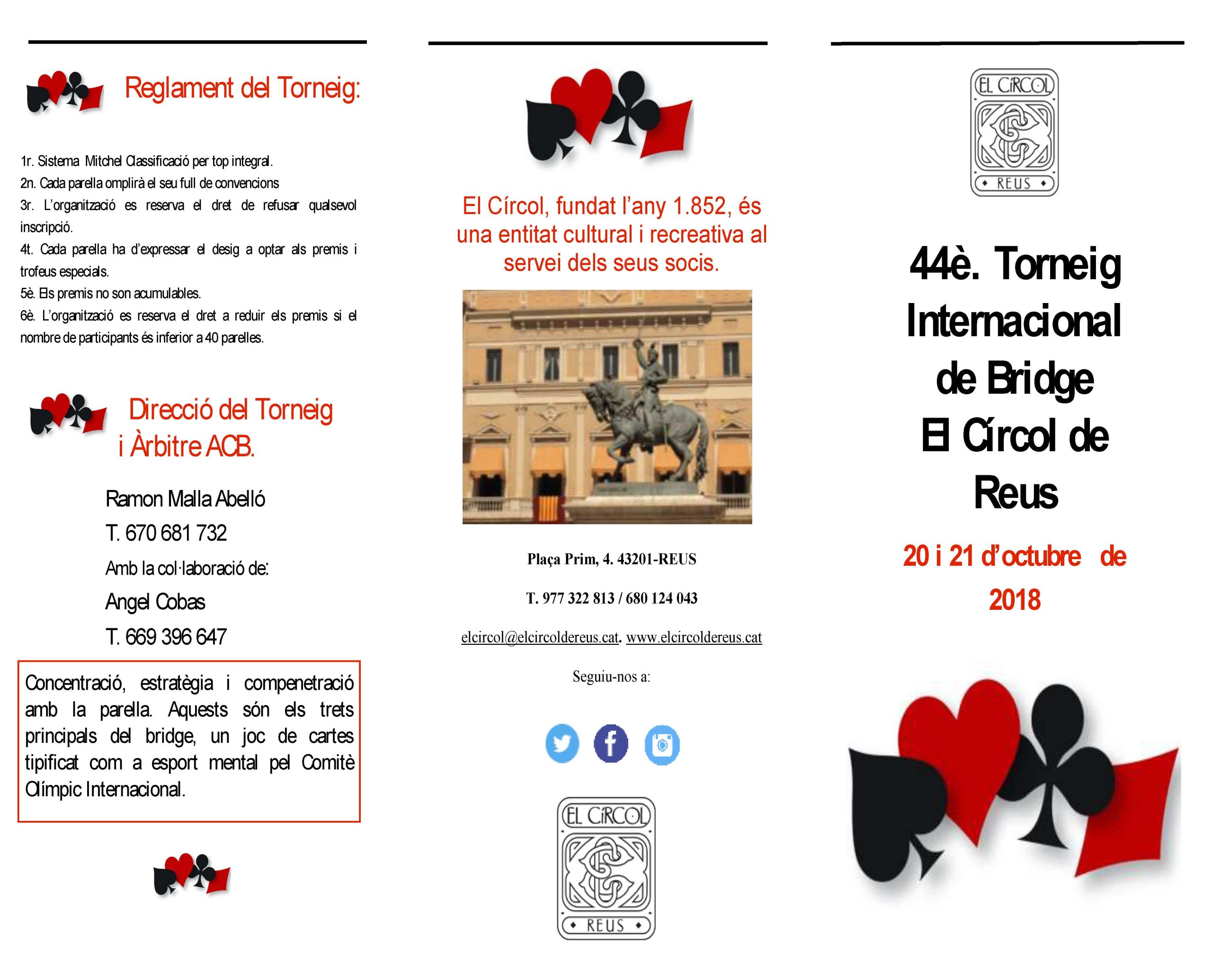 Data oct. 20 - 21, 2018Temps 6:00 pm - 8:00 pmLloc El Círcol de ReusOrganitza El Círcol de ReusCategoria Bridge Més info
