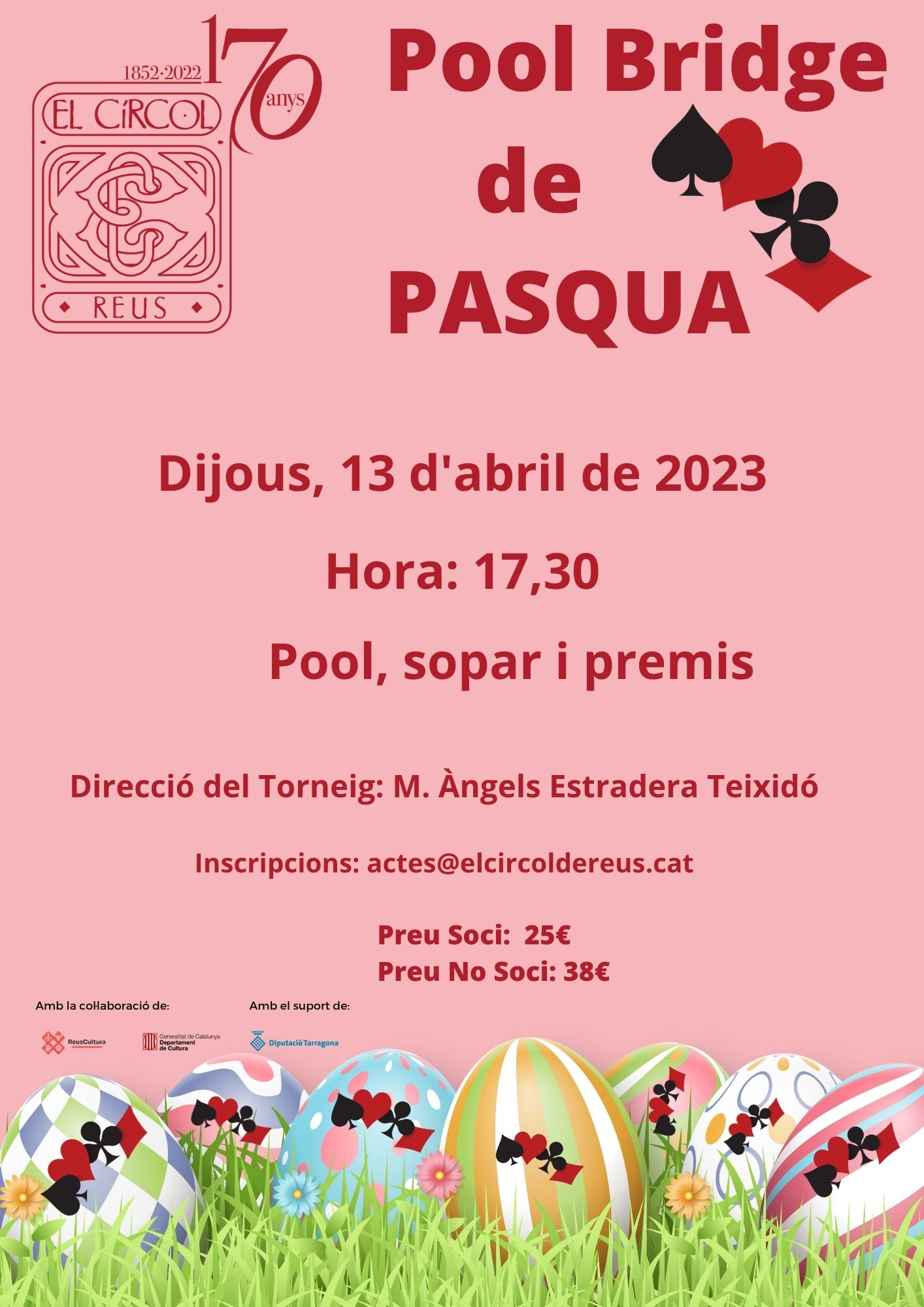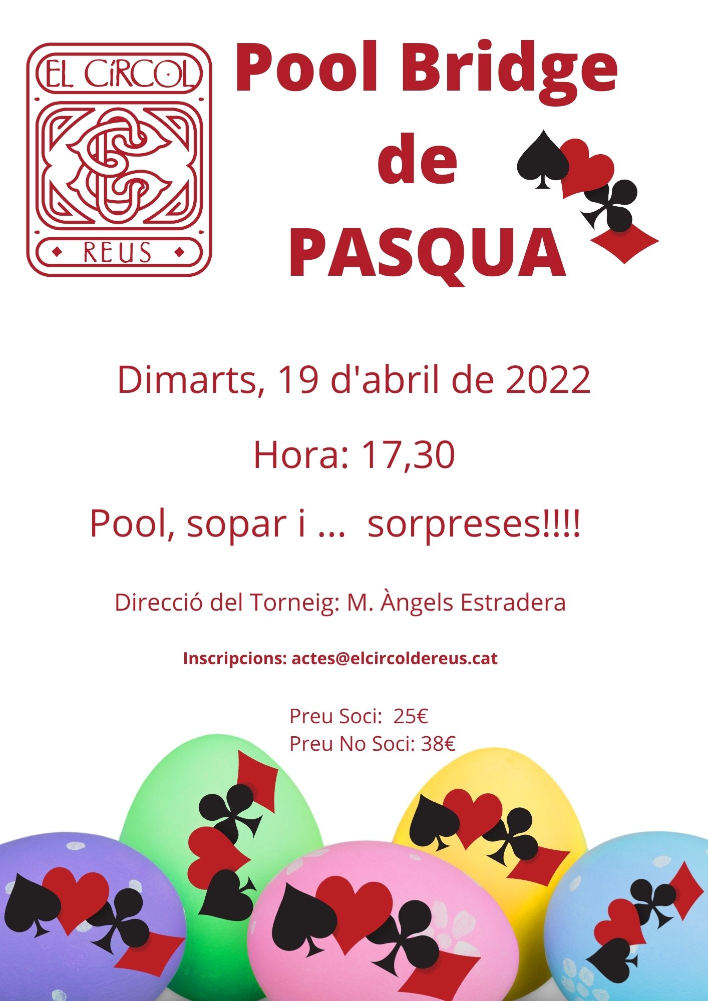 Data abril 19, 2022Temps 5:30 pm - 8:30 pmLloc El Círcol de ReusOrganitza El Círcol de ReusCategoria Bridge Més info