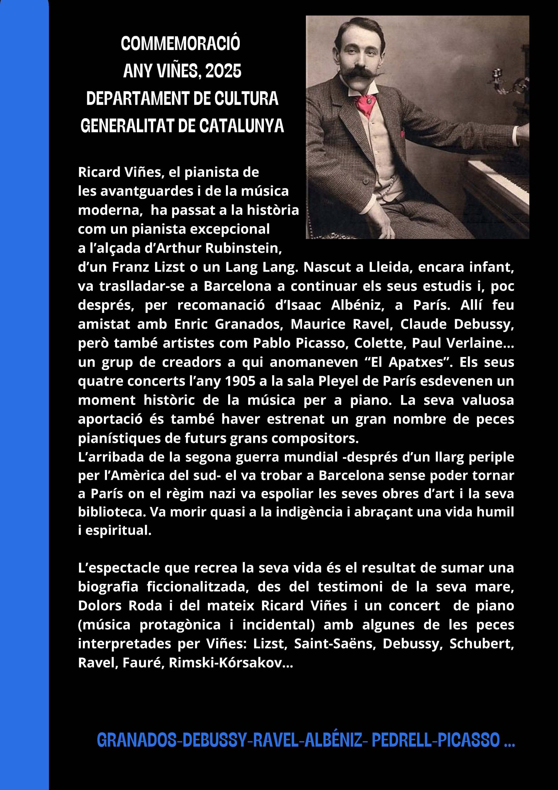 Biografia teatralitzada i concert sobre el gran pianista català Ricard Viñes.