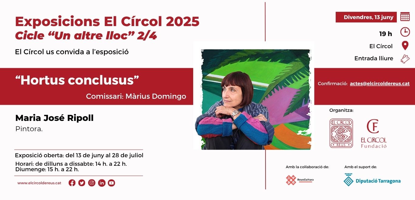 Data abril 25, 2025Temps 7:00 pm - 8:30 pmLloc El Círcol de ReusOrganitza El Círcol de Reus, Fundació El CírcolCategoria Exposicions Més info