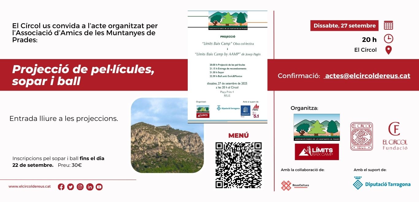 Data novembre 27, 2025Temps 4:00 pm - 7:30 pmLloc El Círcol de ReusOrganitza El Círcol de Reus, Fundació El CírcolCategoria Círcol JoveCírcol ObertTallers
