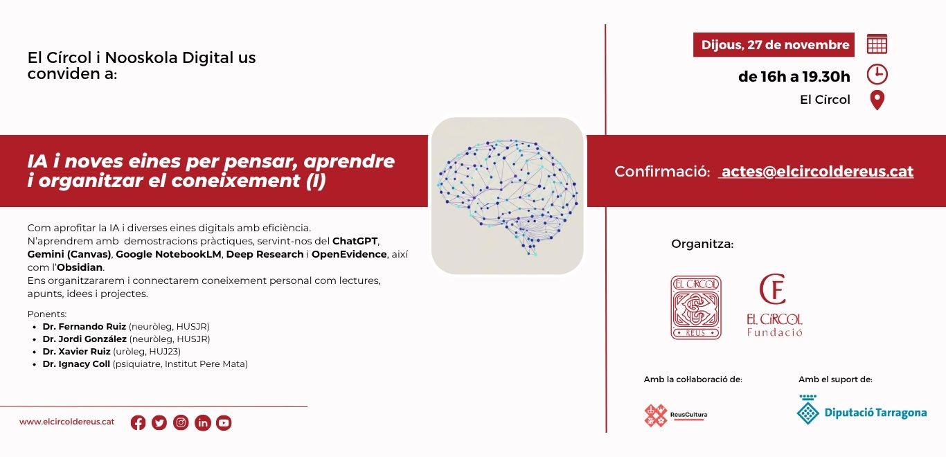 Data gener 14, 2026Temps 7:00 pm - 8:00 pmLloc El Círcol de ReusOrganitza Associació d’Alzheimer i altres transtorns Neurocognitius de Reus i Baix Camp, El Círcol de Reus, Fundació El CírcolCategoria Círcol Obert