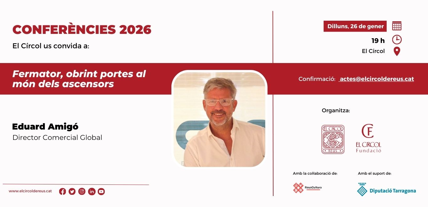 Data novembre 25, 2024Temps 8:30 pm - 11:30 pmLloc El Círcol de ReusOrganitza El Círcol de Reus, Fundació El CírcolCategoria Conferències institucionals