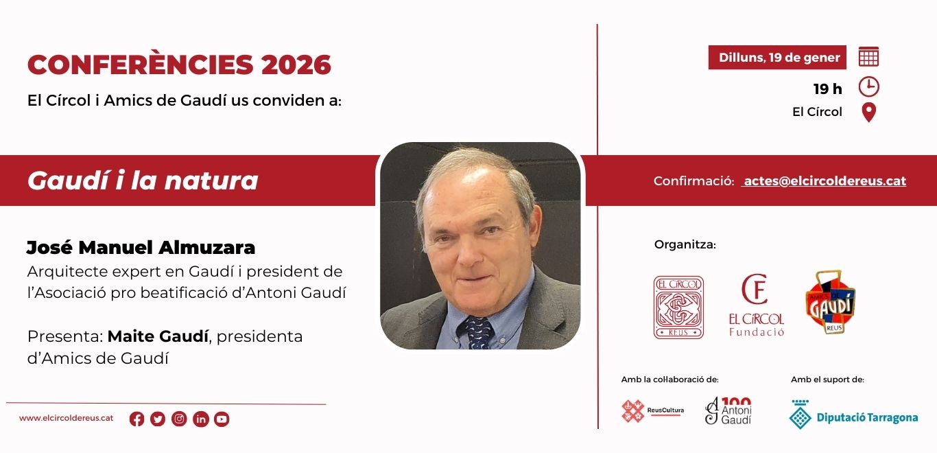 Data octubre 28, 2025Temps 7:30 pm - 9:00 pmLloc El Círcol de ReusOrganitza El Círcol de Reus, Fundació El Círcol, Amics de Gaudí, Rotary Club de ReusCategoria Presentacions llibre